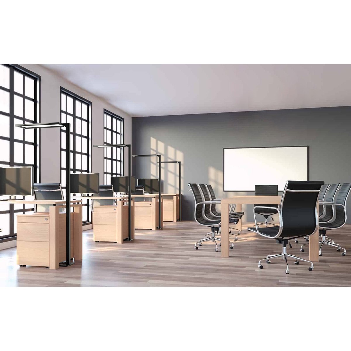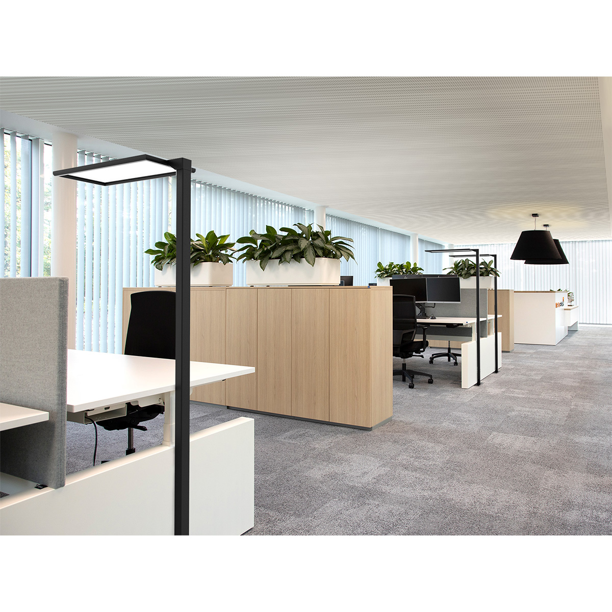 Erhältlich in Weiß, Hellgrau und Schwarz, fügt sich das minimalistische Design nahtlos in verschiedene Büromöbel ein. Mit 80 W Leistung und einer A-Klasse Energieeffizienz bieten diese stehleuchten sowohl direkte als auch indirekte Beleuchtung und überzeugen durch eine lange Lebensdauer von 50.000 Stunden.